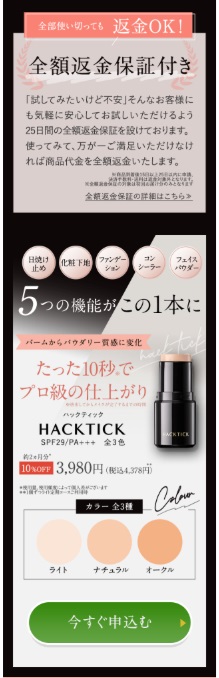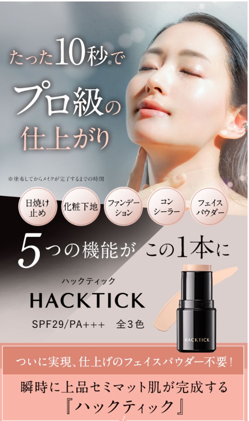 「ハックティック」は、これ1本でベースメイクを完了できるシンプルな便利アイテムとして、多くのユーザーに利用されています。忙しい毎日の時短に役立つだけではなく、自然な仕上がりや使いやすさにもこだわりがあり、普段使いしやすい点が魅力です。