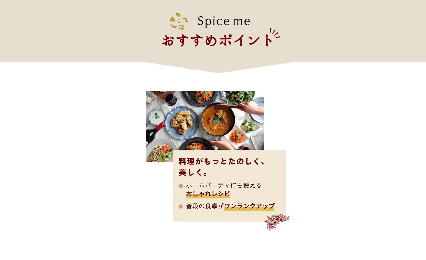 Spice me は、人気レストランのシェフが監修したスパイスレシピを、