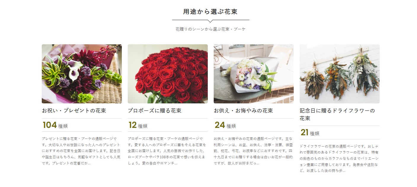 用途に合わせて探せるため、迷うことなくぴったりの花が見つかります。