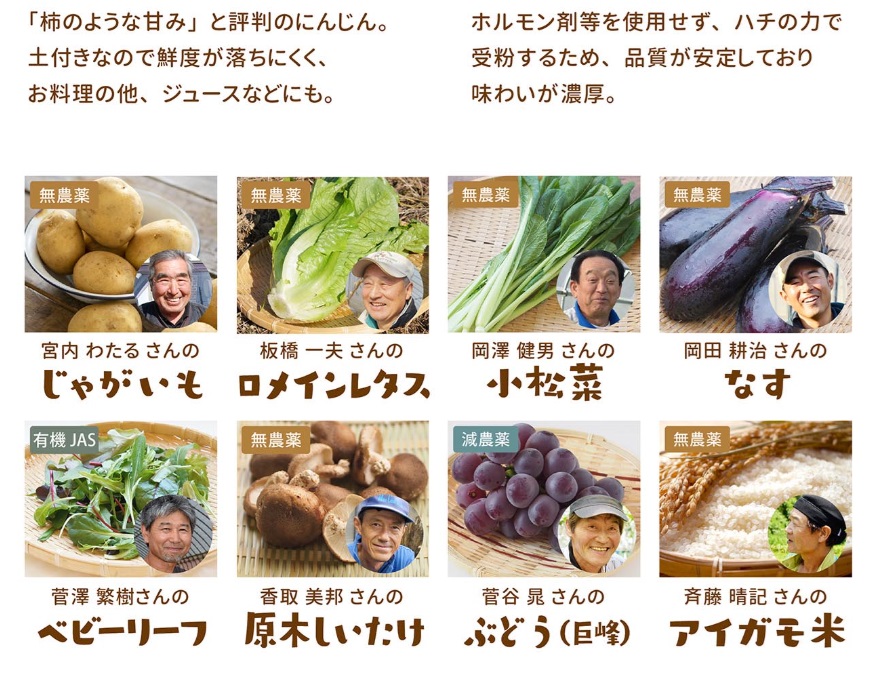 季節ごとのラインナップも魅力。春はみずみずしい葉物、夏は濃厚なトマト、秋冬は甘みの増した根菜類など、食卓で季節を感じられます。