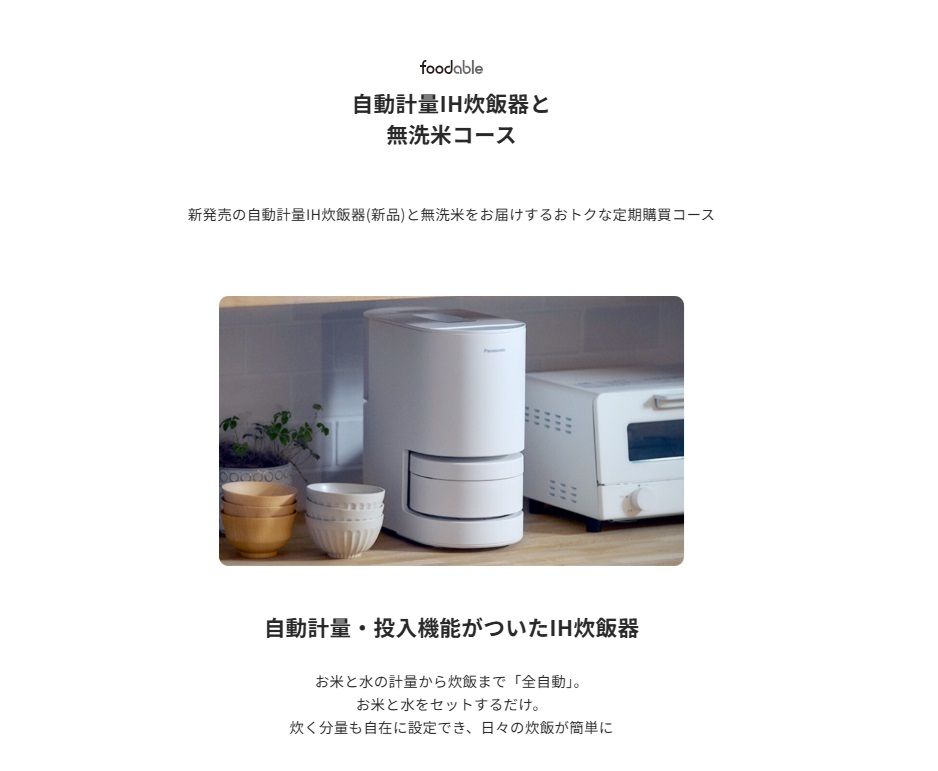 自動計量IH炊飯器と無洗米の定期便【foodable】は、