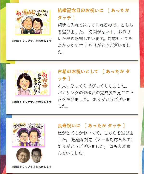 など、シーンに合わせて最適な雰囲気の似顔絵を選べるのが魅力。