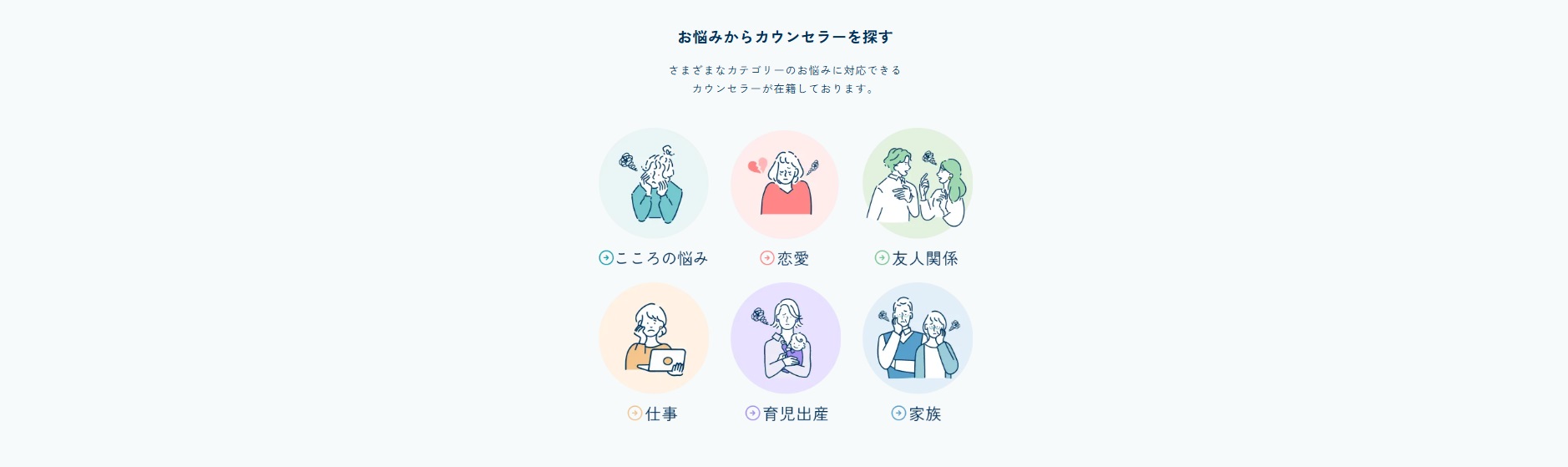 夫婦関係、子育てのストレス、親との関係など、家庭内の悩みは人に話しづらいものです。オンラインなら、感情的になりすぎずに落ち着いて話すことができます。