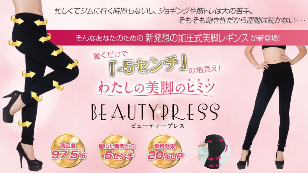 毎日のデスクワークや立ち仕事で、脚のむくみや疲れが気になる方へ。「ビューティープレス」は、着圧設計で足全体をしっかりサポートし、美しい脚ラインをサポートする着圧式レギンスです。自宅で過ごす時間や通勤中でも、手軽に脚ケアが可能です。