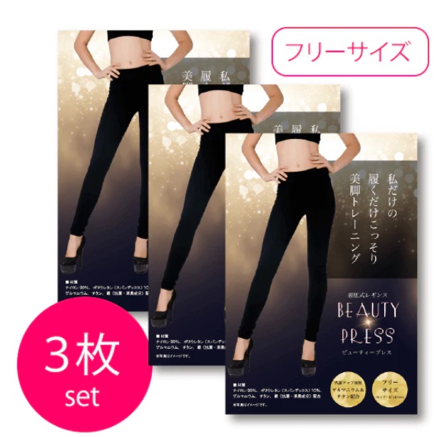 ビューティープレスは、毎日の着用でむくみケアや引き締め効果をサポート。特別な機器や運動は必要なく、テレビを見ながらや家事の合間にも使えます。忙しい方でも無理なく続けられる美脚サポートアイテムです。