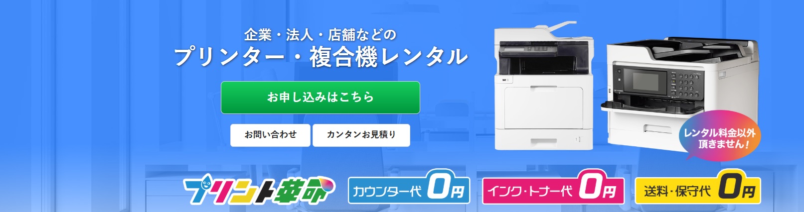 定額制・刷り放題の複合機レンタルサービスです。