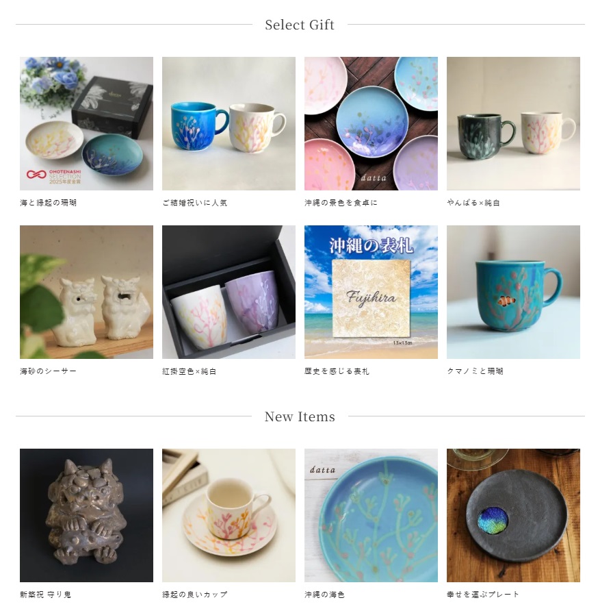 結婚祝い、食器ギフト、シーサーや表札など、贈る相手の暮らしにそっと寄り添うアイテムが揃っています。