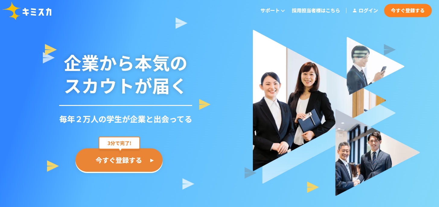 企業から学生にアプローチが届くスカウト型就活サービスです。