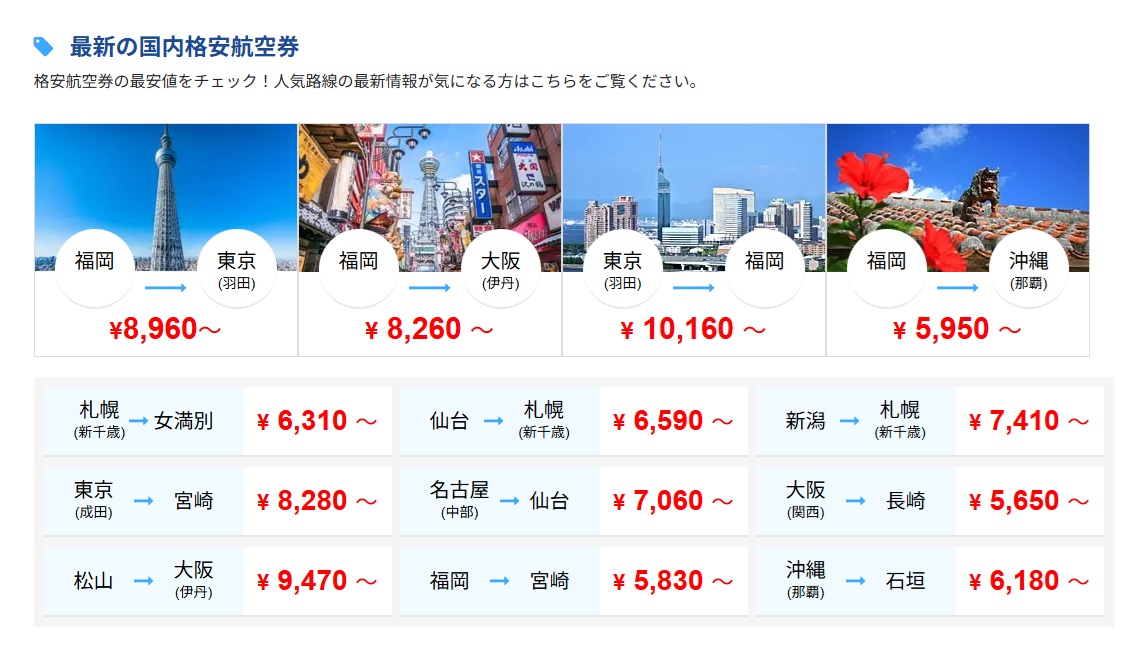 「できるだけ安く航空券を取りたい」「急な出張や帰省で今すぐ予約したい」という方に選ばれています。